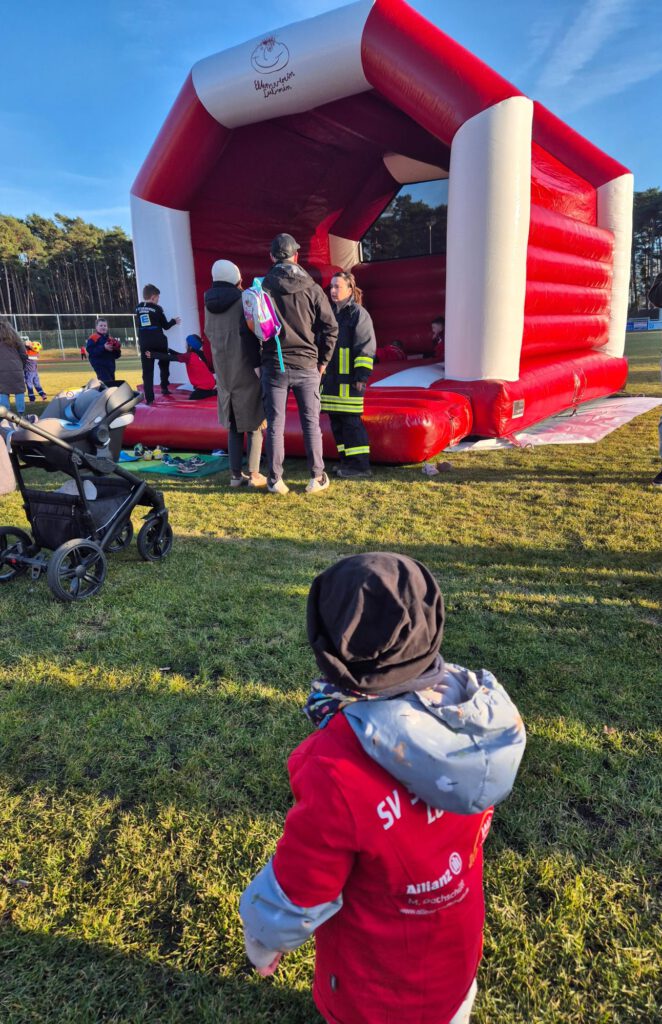 Premiere feierte die Hüpfburg beim Fest des Sportvereins und konnte dort direkt punkten. Der Verein wurde sogar vom NDR gezogen und durfte sich bei einer Challenge beweisen. Beim Schubkarren-Staffellauf haben sie sich großartig geschlagen und den Wettbewerb gewonnen!